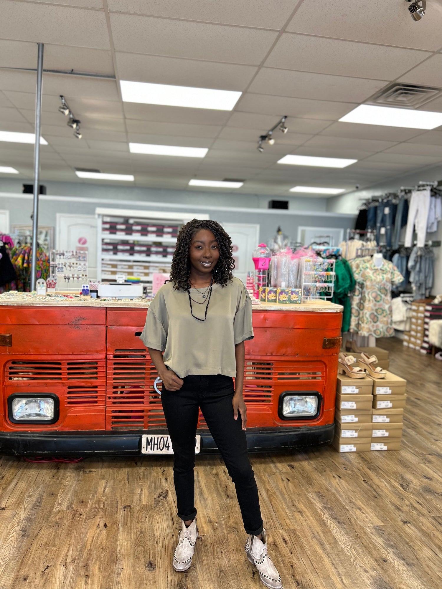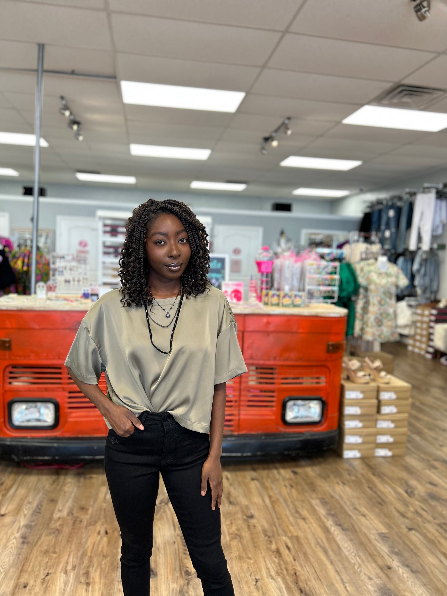 Introducing The I Pick You Top—a sophisticated and stylish satin top, perfect for completing any autumn look. With a luxe silky texture and boxy silhouette, you can experience the warmth of the season in beautiful olive green. Short sleeves and a classic cut add classic flair, while new arrivals make this top the perfect choice for your fall wardrobe.