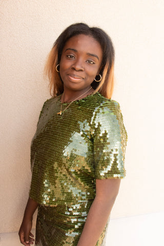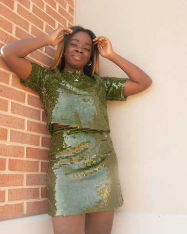 Shine like fireworks at your next special occasion in our Keith Top! This luxe crop top, crafted with dazzling sequins, is sure to spark up any night out. With a button at the back and short sleeves to keep you looking chic and stylish, this top is sure to have you feeling fabulous and festive. Get the ultimate holiday look with the matching skirt!