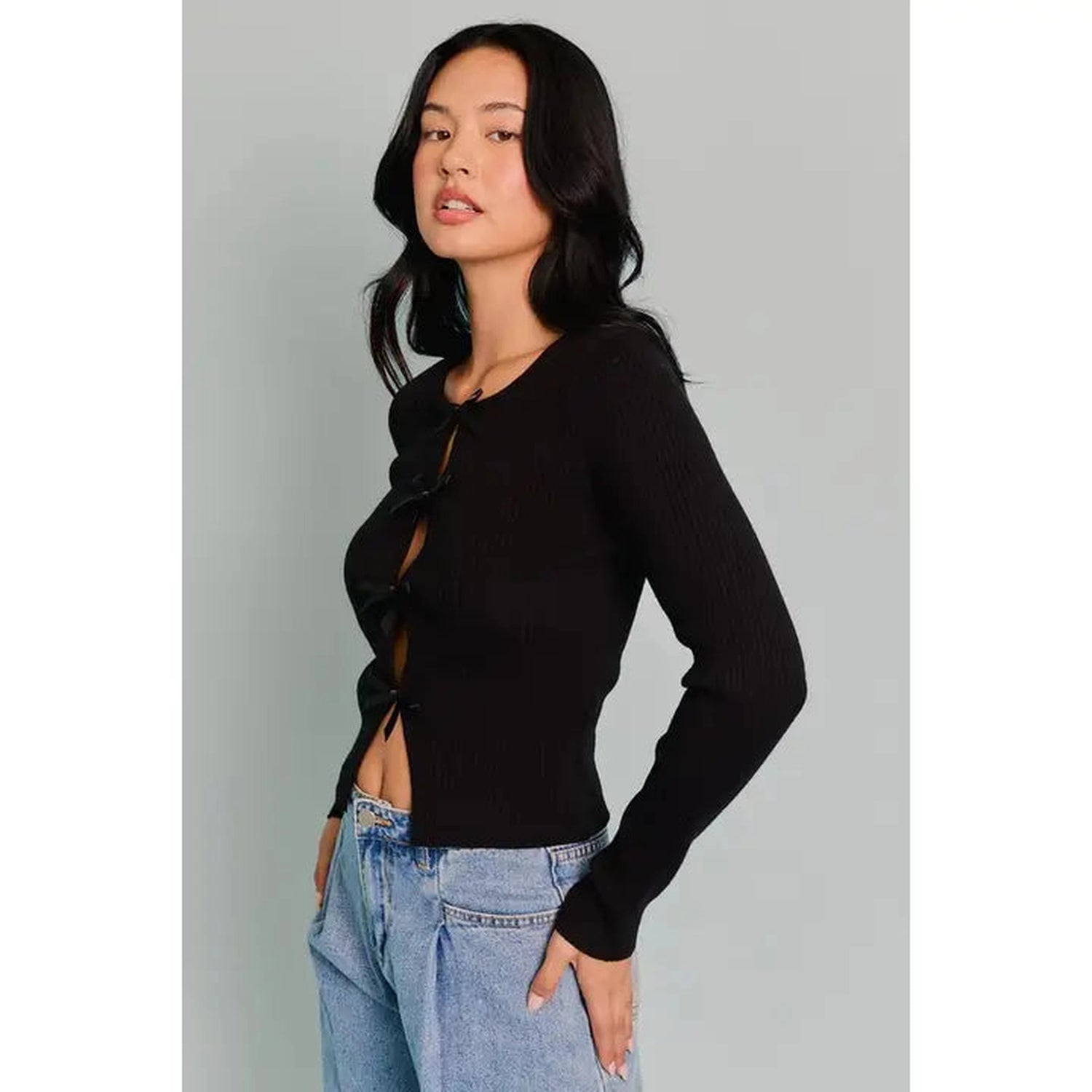 Add a touch of whimsy to your wardrobe with The Lexie Bow Top! This long sleeve sweater features a charming satin bow detail that will elevate any outfit. Stay cozy and stylish with this playful piece. (Bow-dacious, isn't it?)