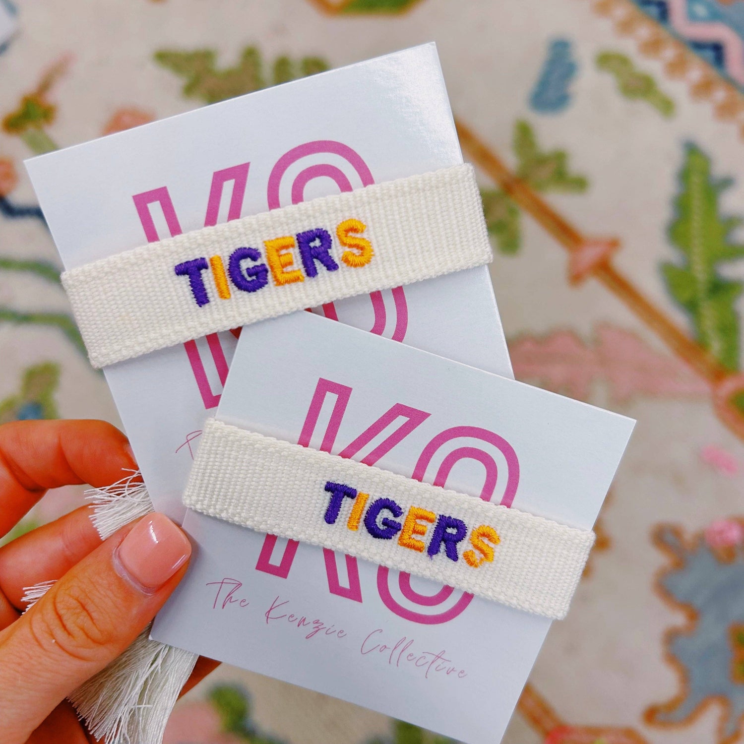 The Kenzie Collective's Tigers Bracelet is the perfect way to add a pop of trendiness to any look. Crafted from an adjustable, friendship-style woven embroidered tassel, it's as easy to slip on or off as it is to turn heads! Unleash your inner fashionista and style with a roar!