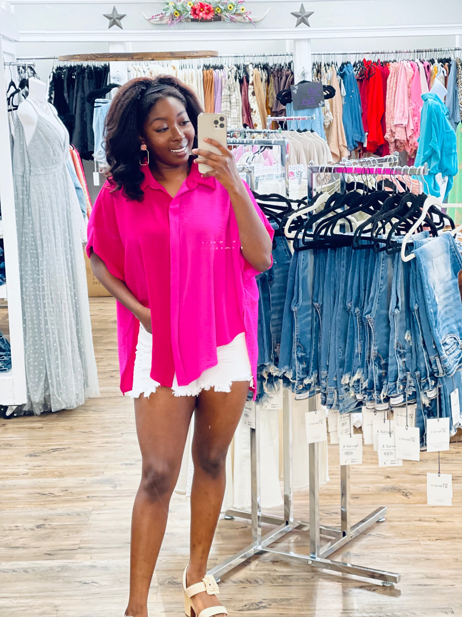 You're right, there is always a positive side to everything. Choose this shirt for the best of both worlds. Made of 100% Polyester it features two shades of pink in one blouse, and oversized. The style is simple and versatile incorporating the best of both worlds; whether you wear it under a cardigan or with a pair of jeans, this shirt will be the perfect addition to any outfit.