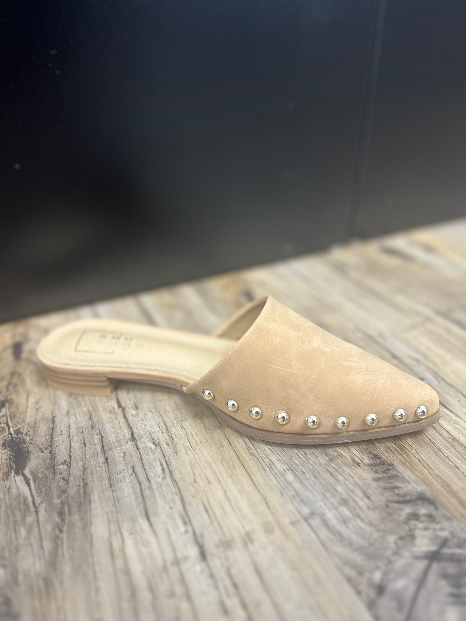 Elevate your style with the Trinity Mule Shoe. Its timeless, minimalist silhouette is adorned with metallic round studs, giving you an edgy yet sophisticated look. These slip-on mules are perfect for any occasion, providing both comfort and style in one luxurious package.