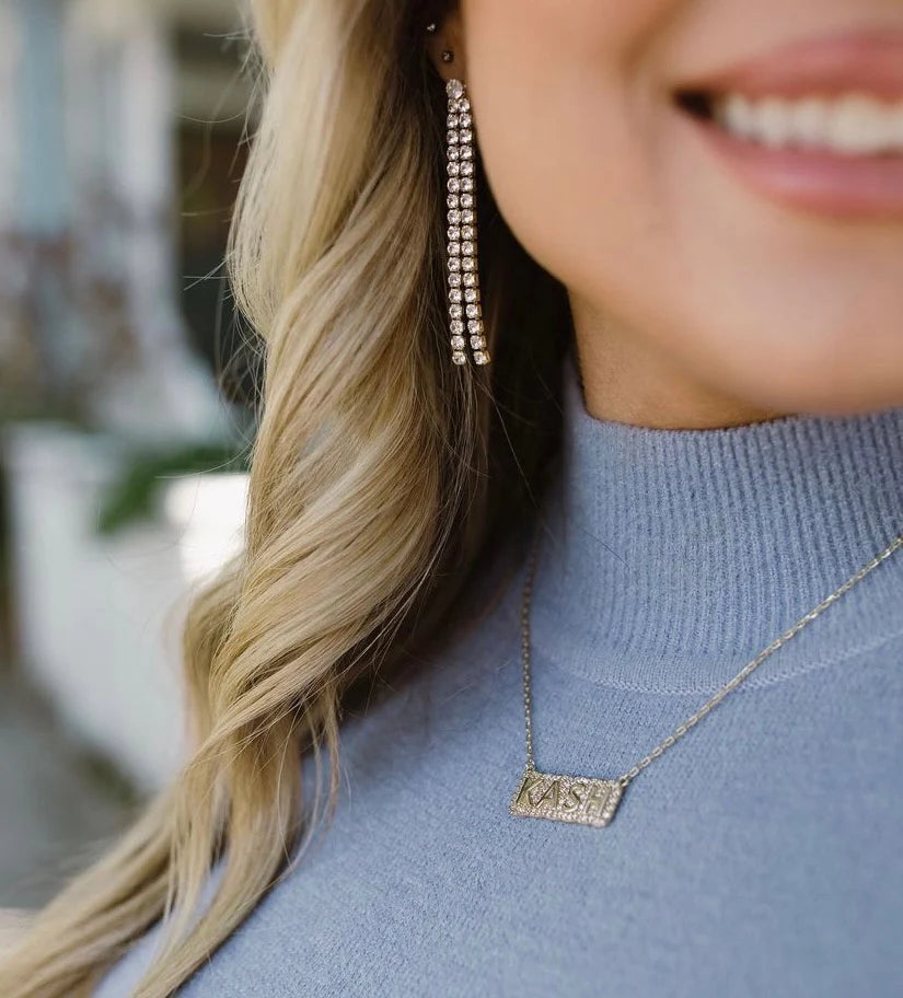 Turn every moment into a spotlight moment with the Trudy Drops. These stunning linear earrings feature rows of shimmering crystals that catch the light with every move, creating an elegant, eye-catching sparkle that elevates any look.