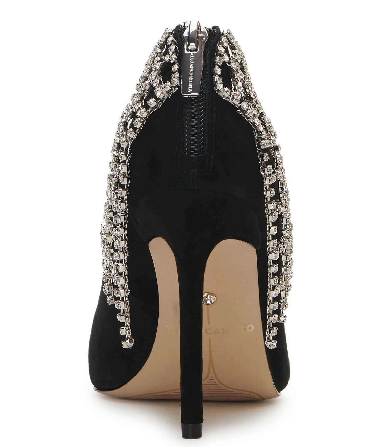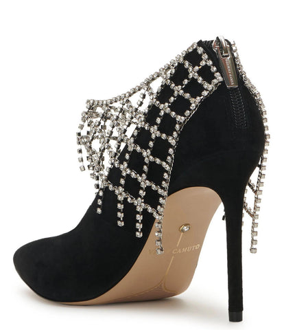 Step into dazzling elegance with VC-FASTA, crafted from premium sueded and faux leather and adorned with luxurious rhinestone details. A stunning 4" stiletto heel and delicate point toe complete this exquisite look, creating a timeless classic to glamorize any evening look. Finished with a back zipper for easy on-off, VC-FASTA ensures you will look and feel your absolute best.