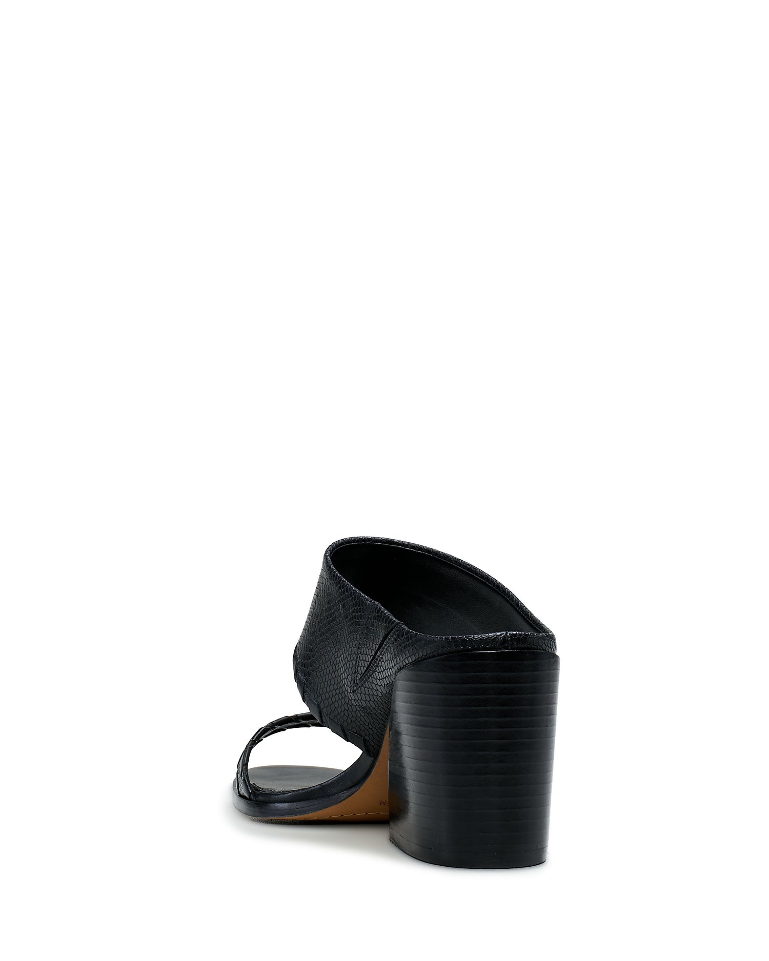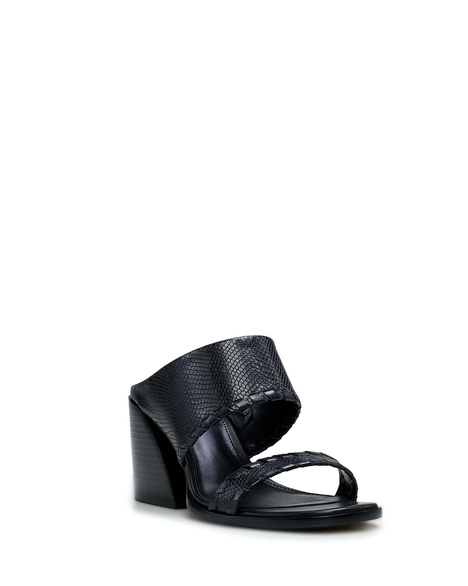 Crafted of smooth or snake-embossed leather, the Kafinny is hand detailed with whipstitching that lends luxe texture. The mule is styled with a narrow toe strap, wide vamp strap and a sculpted block heel perfect for all-day wear—making it our favorite vacation sandal.