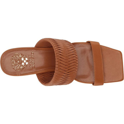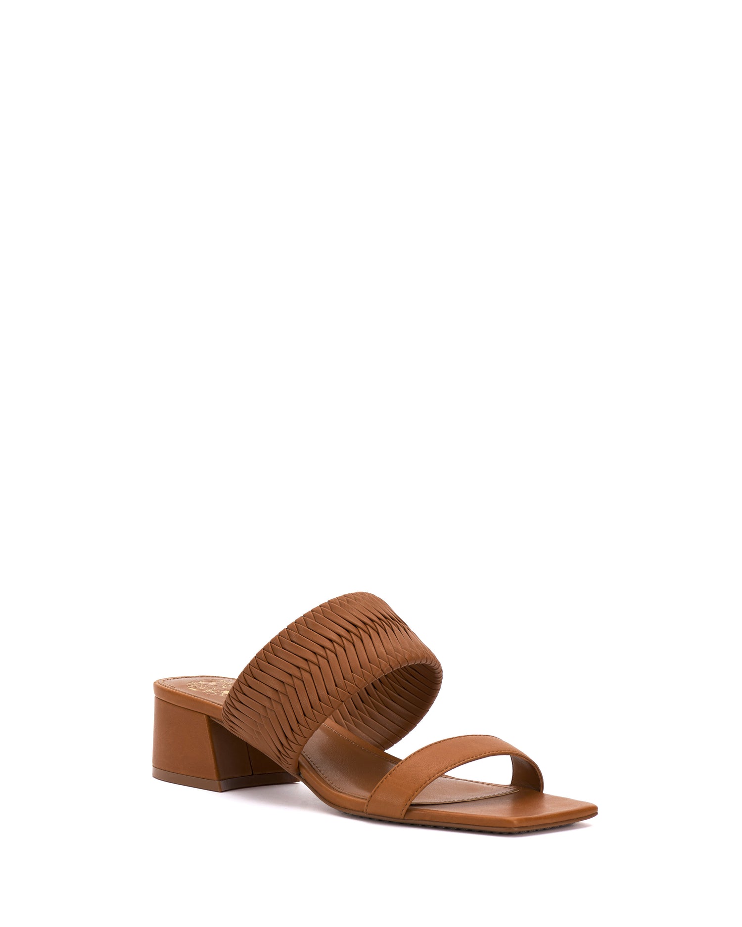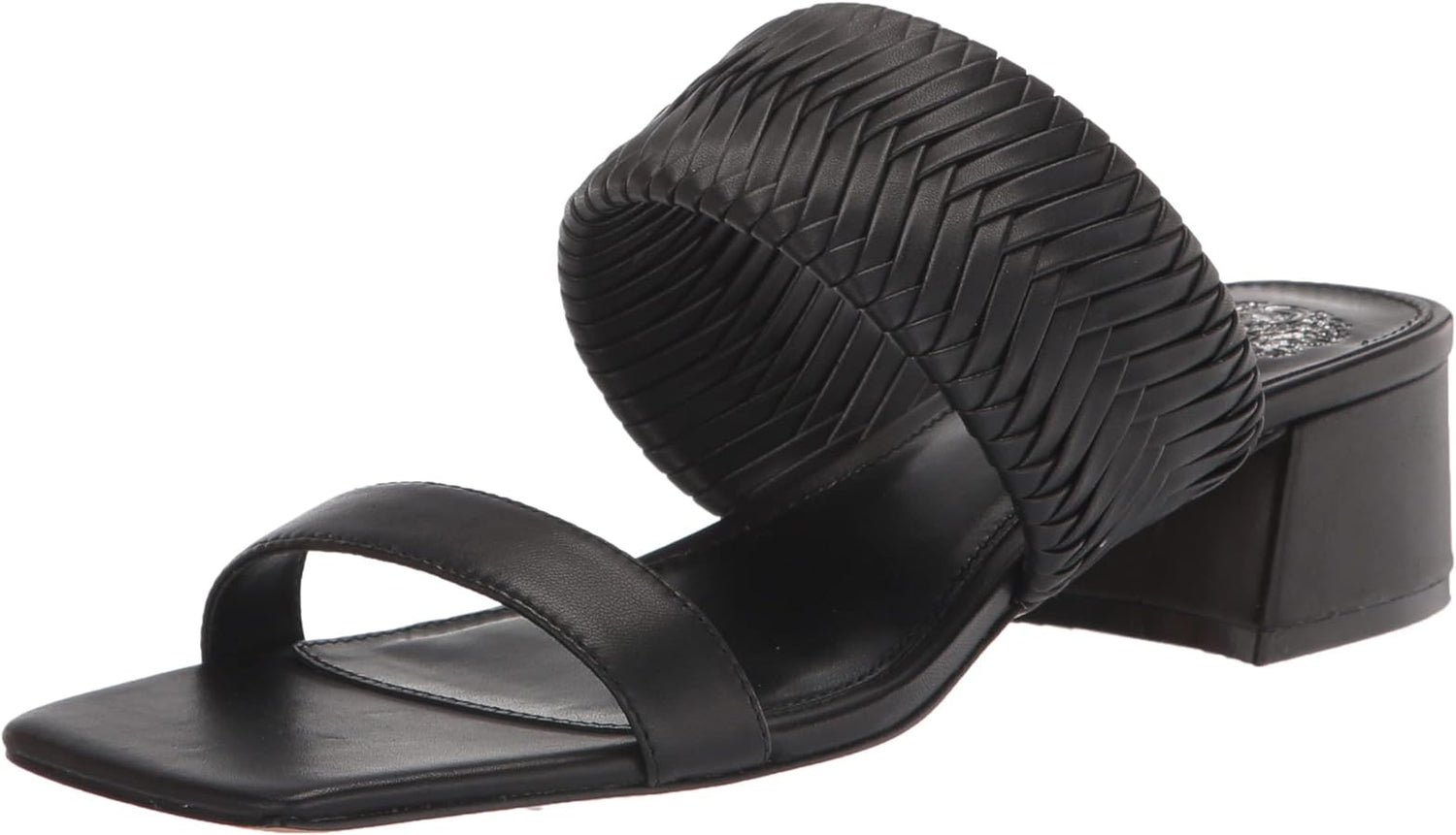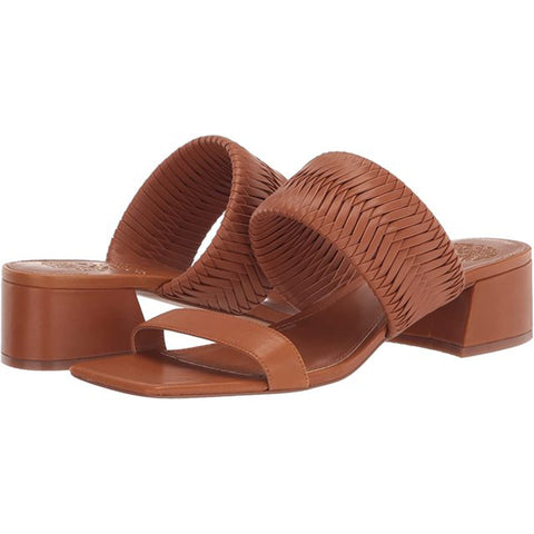 Achieve timeless elegance with the VC- Shamira's classic silhouette. Crafted from smooth faux leather with a woven instep strap, this stylish yet comfortable slip-on sandal is designed with a 1.5” covered block heel and square open toe. Feel fashionable and fabulous no matter the occasion.