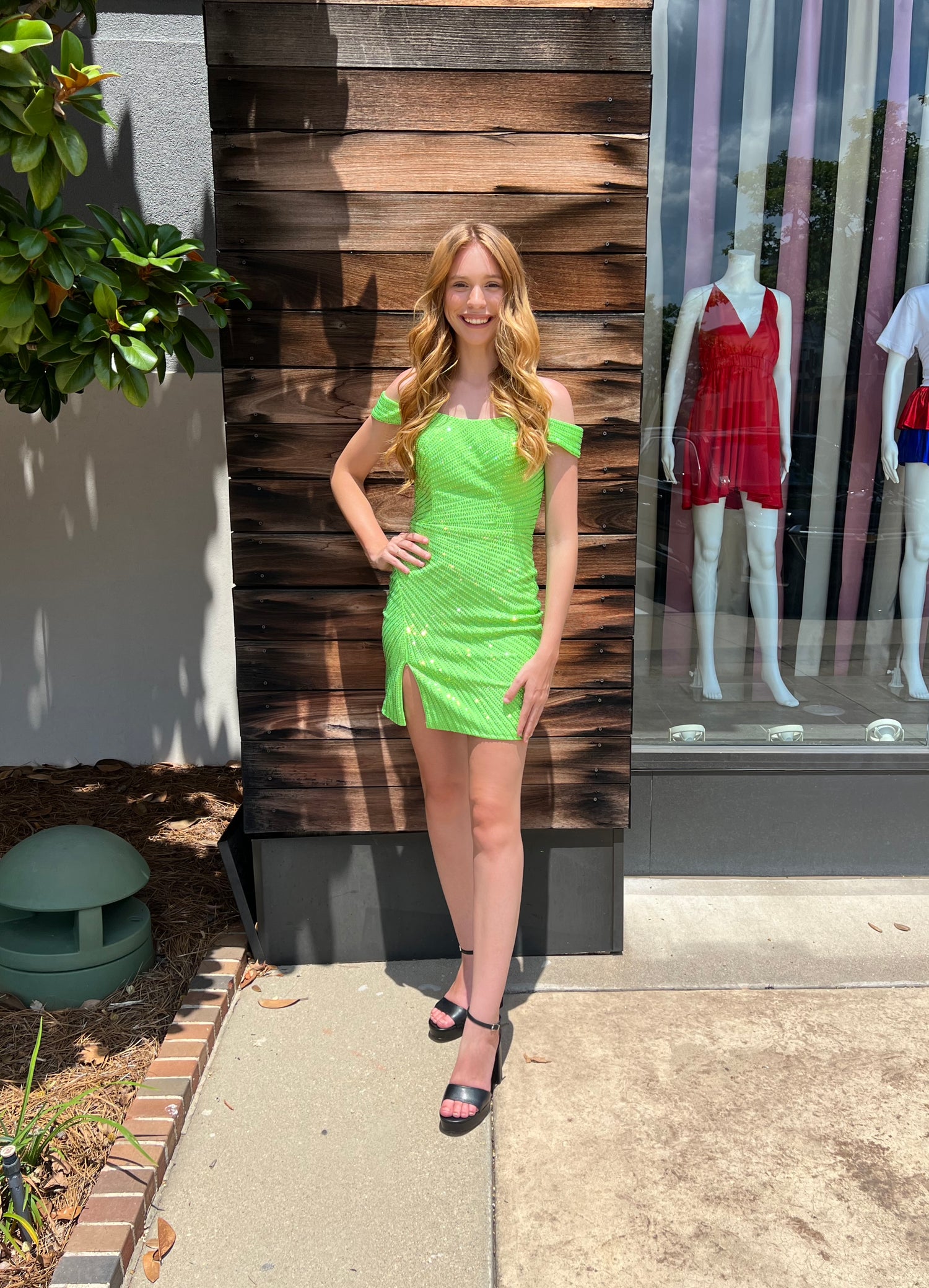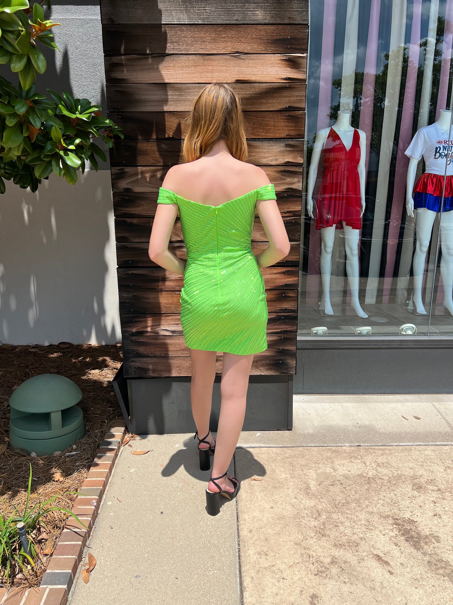 This luxurious Vienna 60084 dress is the perfect evening wear for unforgettable occasions. Adorned with exquisite gems, it captures the light beautifully and sparkles elegantly. With an exquisite off the shoulder silhouette, this short dress accentuates feminine beauty like no other. Get ready to turn heads.