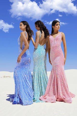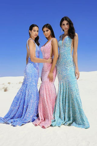 The Vienna 82035 is a fully sequined gown that will take your evening look to the next level. Its signature mermaid fit and horsehair trim create an exclusive silhouette that's designed to turn heads. Plus, the open back adds a sultry touch to any special occasion. Make your entrance unforgettable with this luxurious and timeless gown.