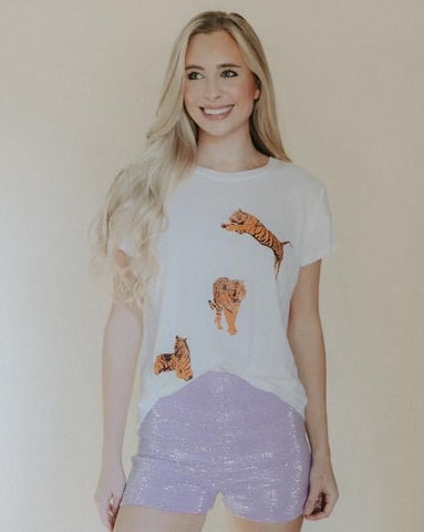 Show off your wild side with this comfy Vintage Tiger Tee! Made of soft white fabric and featuring 3 fierce tigers, this tee is sure to make a statement whether you're lounging around or hitting the town. Let out your inner beast and grab one today!