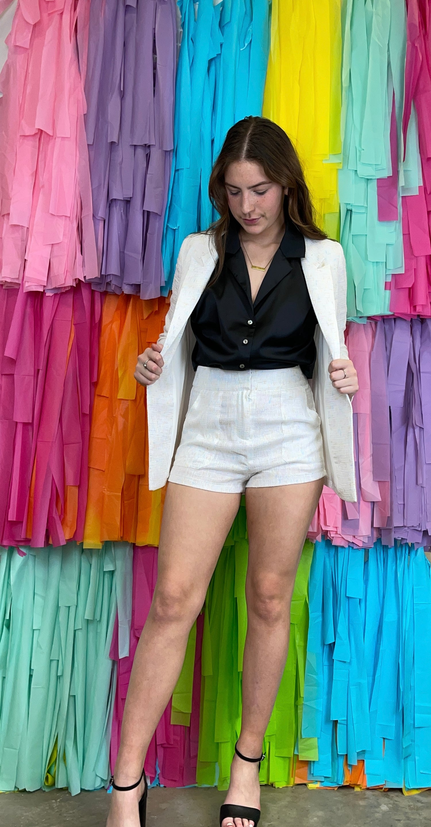 The What Happened Set is the perfect addition to your wardrobe. It features a unique white fabric with pastel spots, making it a versatile piece that can be dressed up or down. It's lightweight, so you won't feel weighed down, and super comfy - great for a long day of activities or a night out.