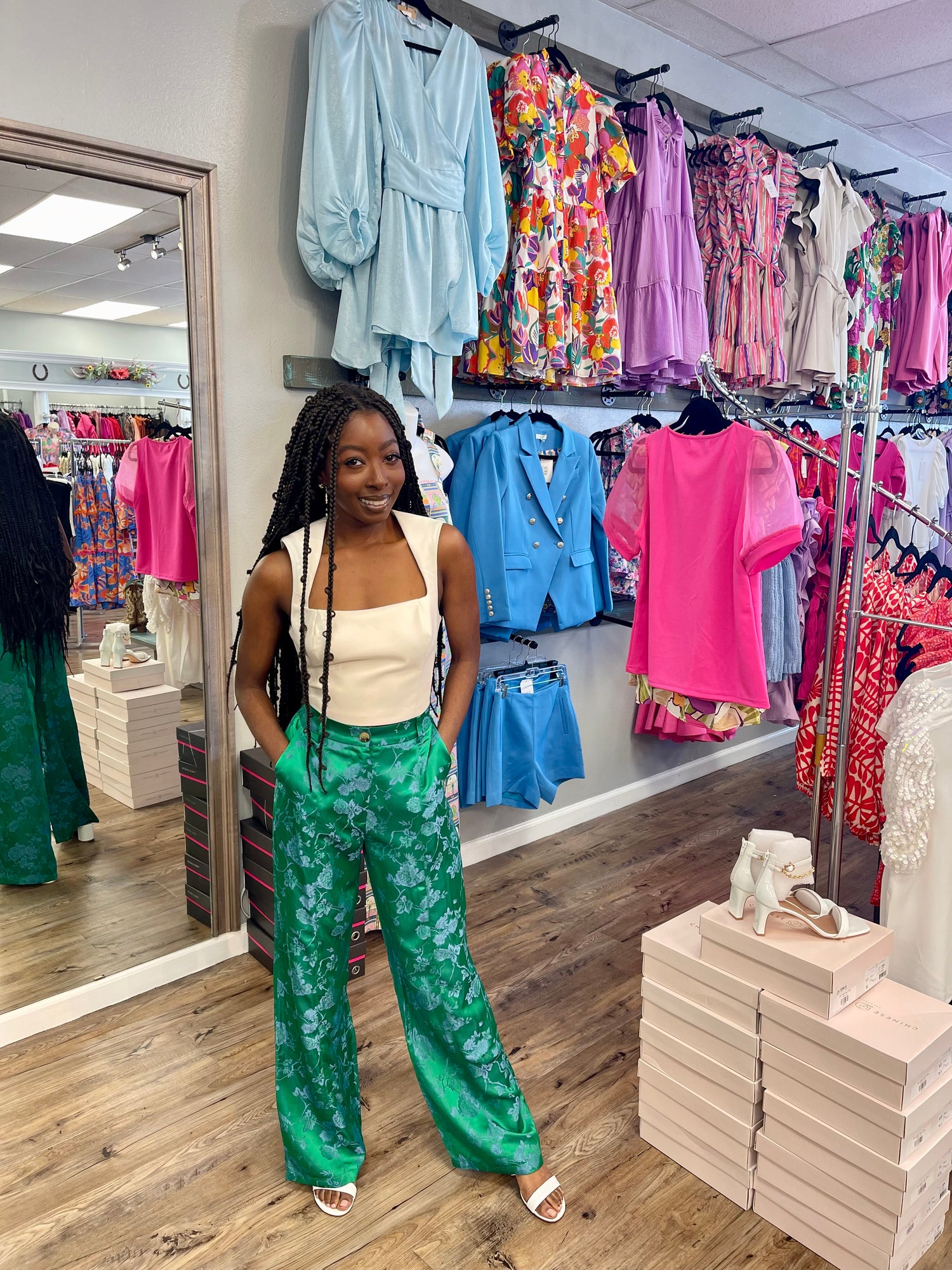 Flower up your style with Zita Panta! These boutique pants feature a playful floral design, perfect for summer and spring. With convenient pockets, they're ideal for a night out. Time to bloom!